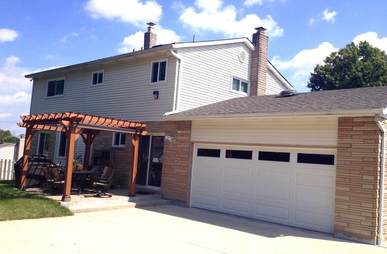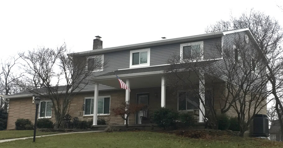 Construction Solutions Home Improvement installed all new Plygem vinyl siding, gutters, and trim to this Anderson Township house. The customer wanted to update this 1970s house with bold, darker colors and Construction Solutions signature 4 inch trim around all windows