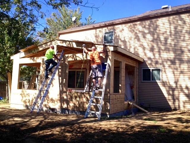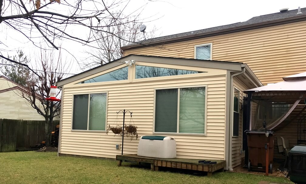 Construction Solutions Home Improvement built this 15×22 addition on the back of this Anderson Township house. We used Midway sliding windows and patio door to bring in as much light as possible at the customers request. We also used Mastic vinyl siding and a G.A.F. dimensional roof to give this addition its characteristic look. We installed a separate heating and cooling mini-split system to control the temperature in the addition separate from the rest of the house. This is now the main living and entertainment area in the home.