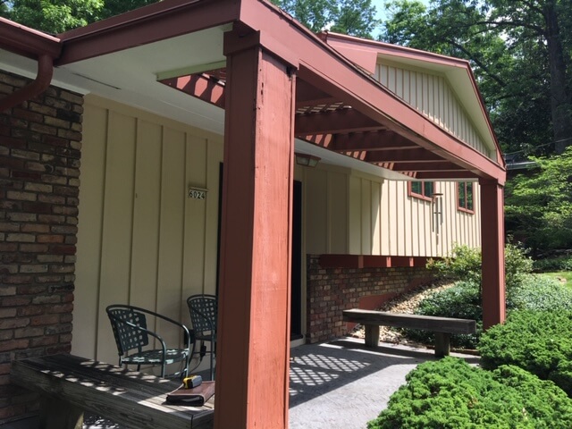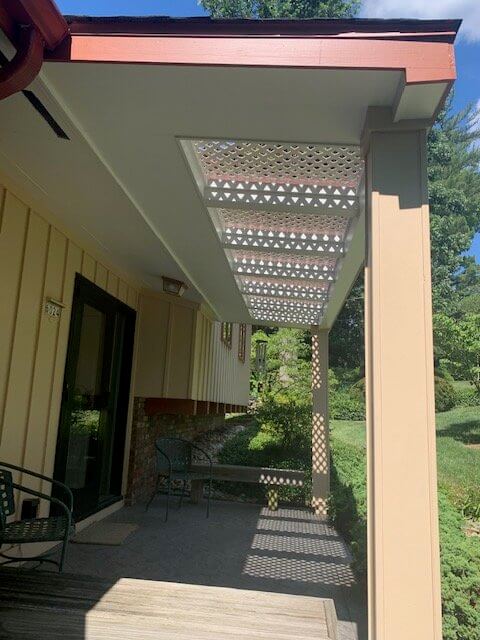 Rebuilt this structure to both provide shelter from the elements and bring character to the front of this home. The old was starting to warp from the large span and not having proper sized dimensional lumber for structure. Wrapped all structural components with primed cedar and installed MDO board on soffits. Included vinyl lactic and two coats of fresh paint for low maintenance.